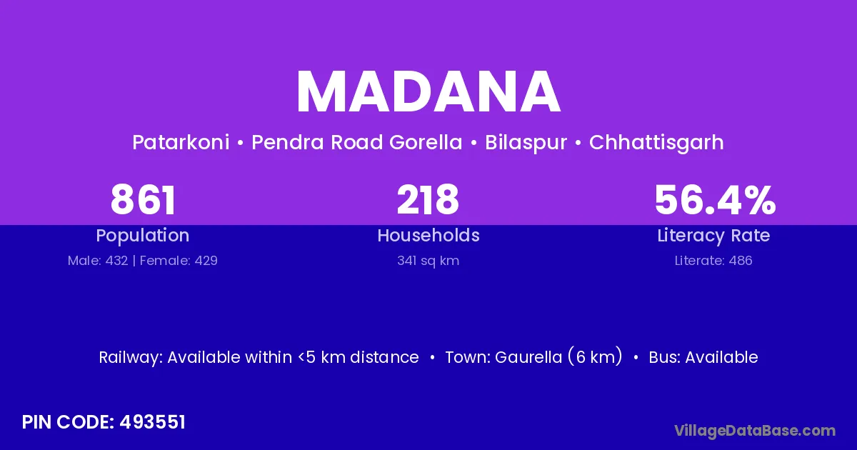 Madana village has a total population of 905 people, of which 416 are males and 489 are females.