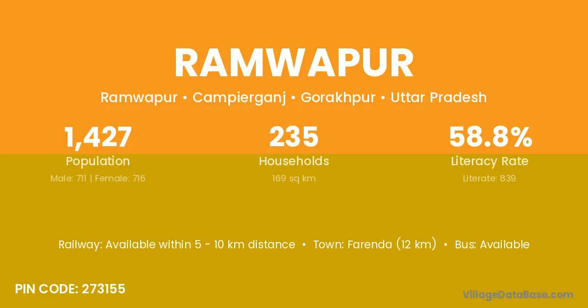 Khalilabad (18 km) is the nearest town to Ramwapur village for major economic activities and is located approximately 18 km away.