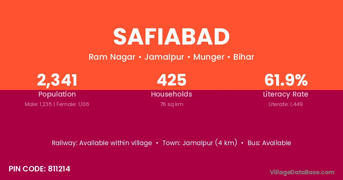 Sant Kabir Nagar (20 km) is the nearest town to Safiabad village for major economic activities and is located approximately 20 km away.
