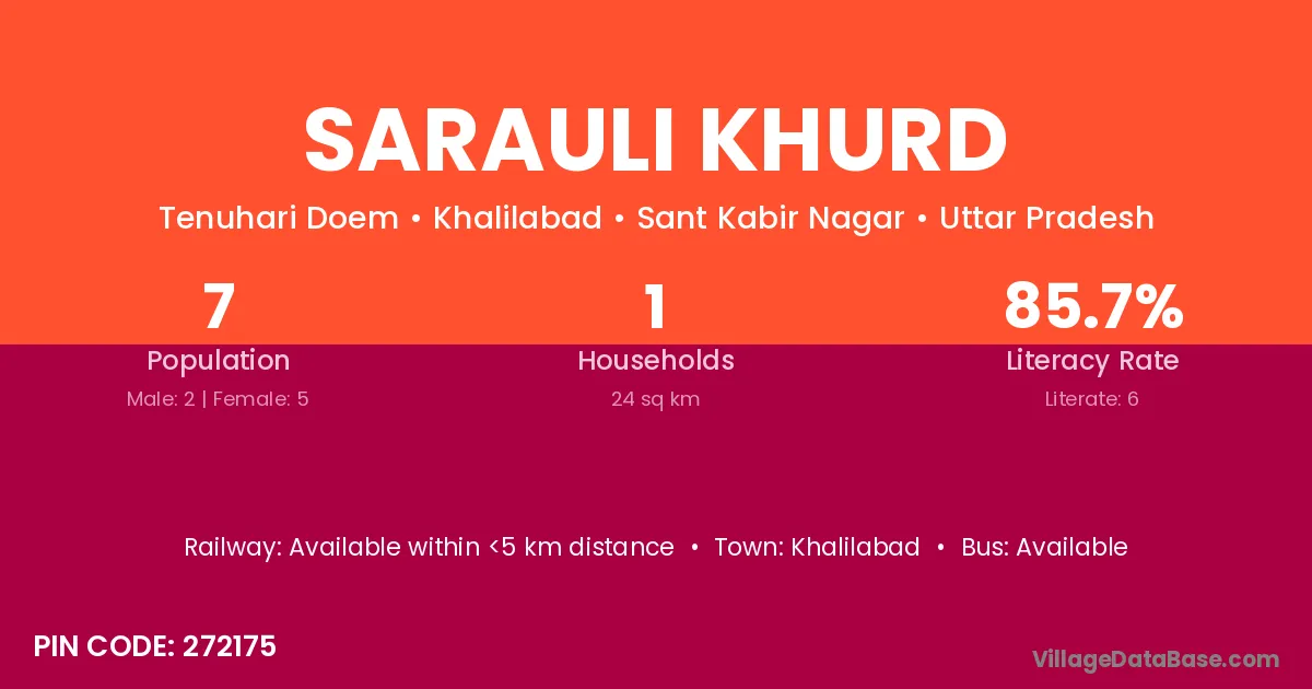 Sarauli Khurd village has a total population of 7 people, of which 2 are males and 5 are females.