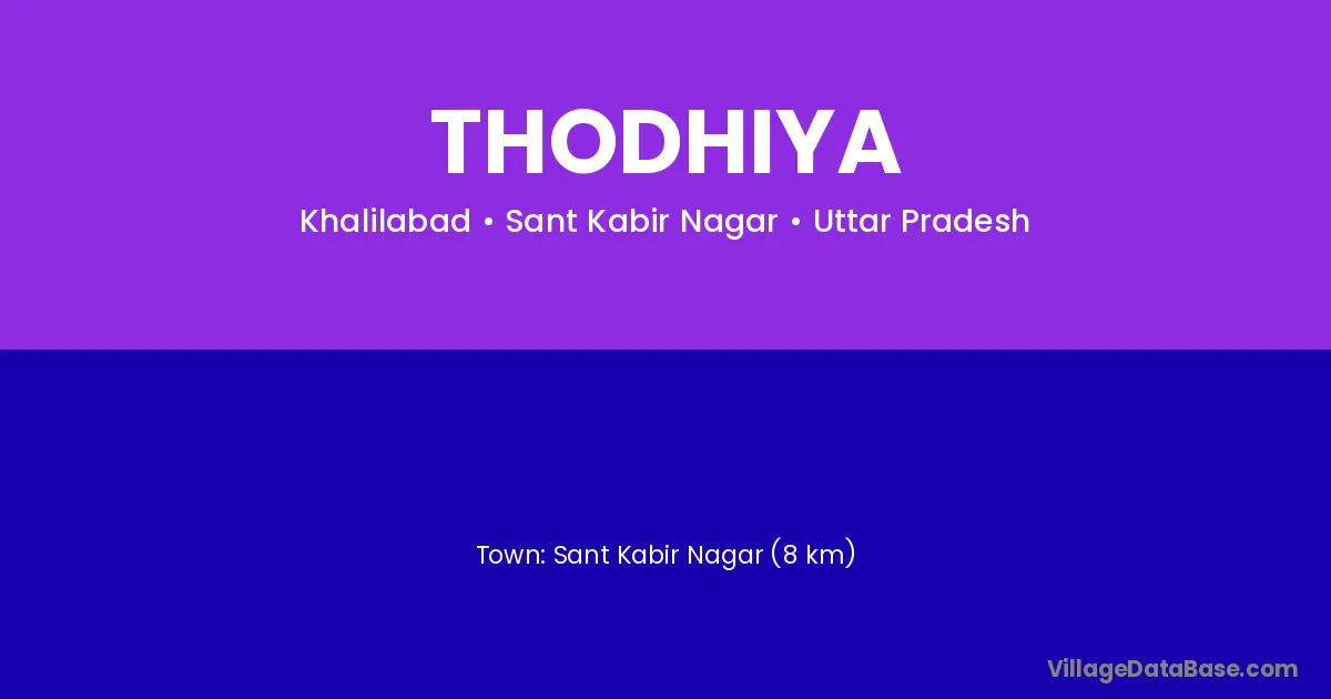 Sant Kabir Nagar (8 km) is the nearest town to Thodhiya village for major economic activities and is located approximately 8 km away.