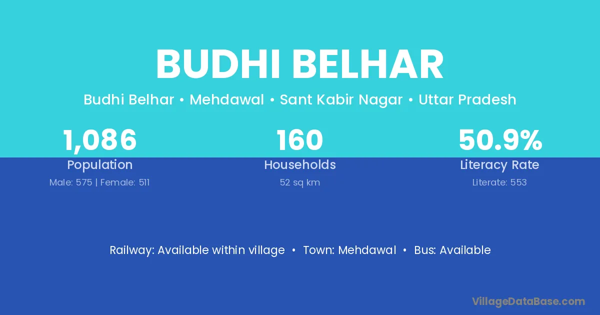 Mehdawal is the nearest town to Budhi Belhar village for major economic activities