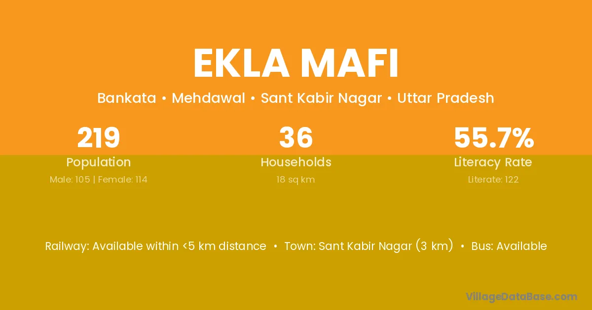 Sant Kabir Nagar (3 km) is the nearest town to Ekla Mafi village for major economic activities and is located approximately 3 km away.
