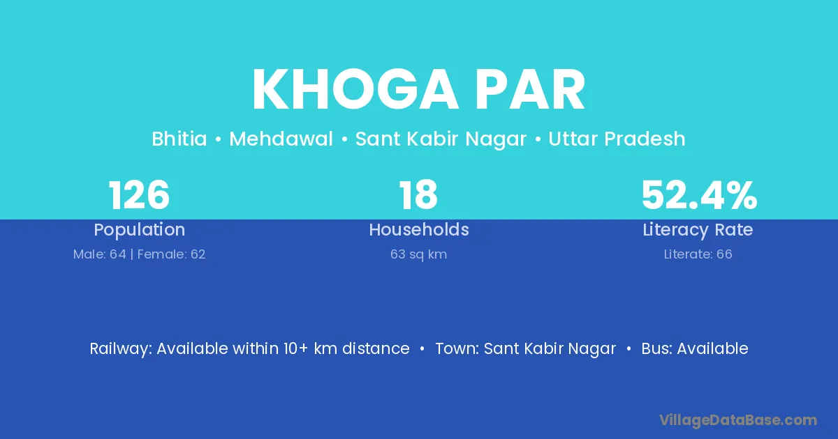 Sant Kabir Nagar is the nearest town to Khoga Par village for major economic activities