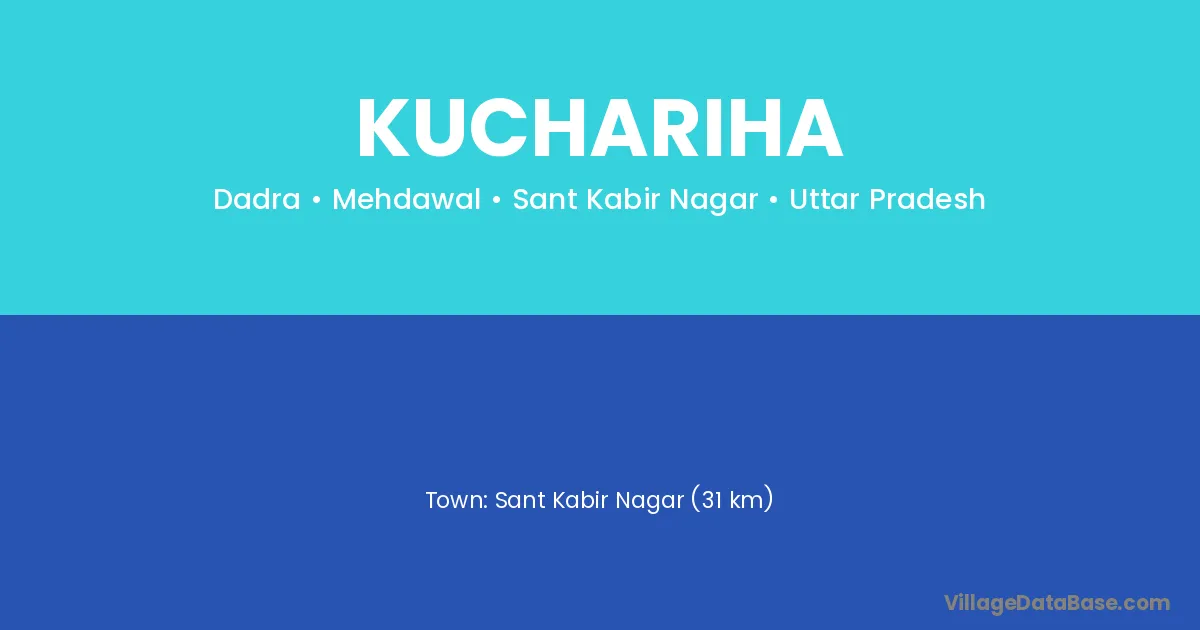 Sant Kabir Nagar (31 km) is the nearest town to Kuchariha village for major economic activities and is located approximately 31 km away.