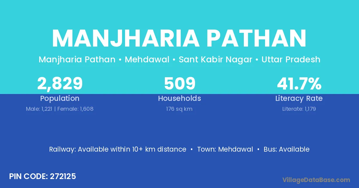 Mehdawal is the nearest town to Manjharia Pathan village for major economic activities