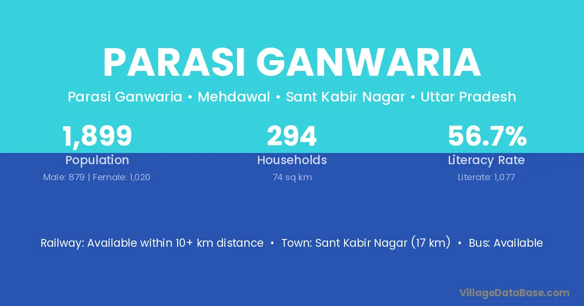 Sant Kabir Nagar (17 km) is the nearest town to Parasi Ganwaria village for major economic activities and is located approximately 17 km away.