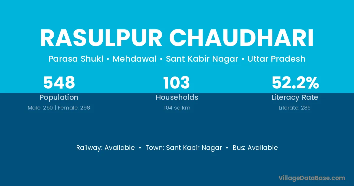 Rasulpur Chaudhari village has a total population of 548 people, of which 250 are males and 298 are females.