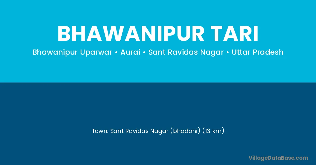 Sant Ravidas Nagar (bhadohi) (13 km) is the nearest town to Bhawanipur Tari village for major economic activities and is located approximately 13 km away.