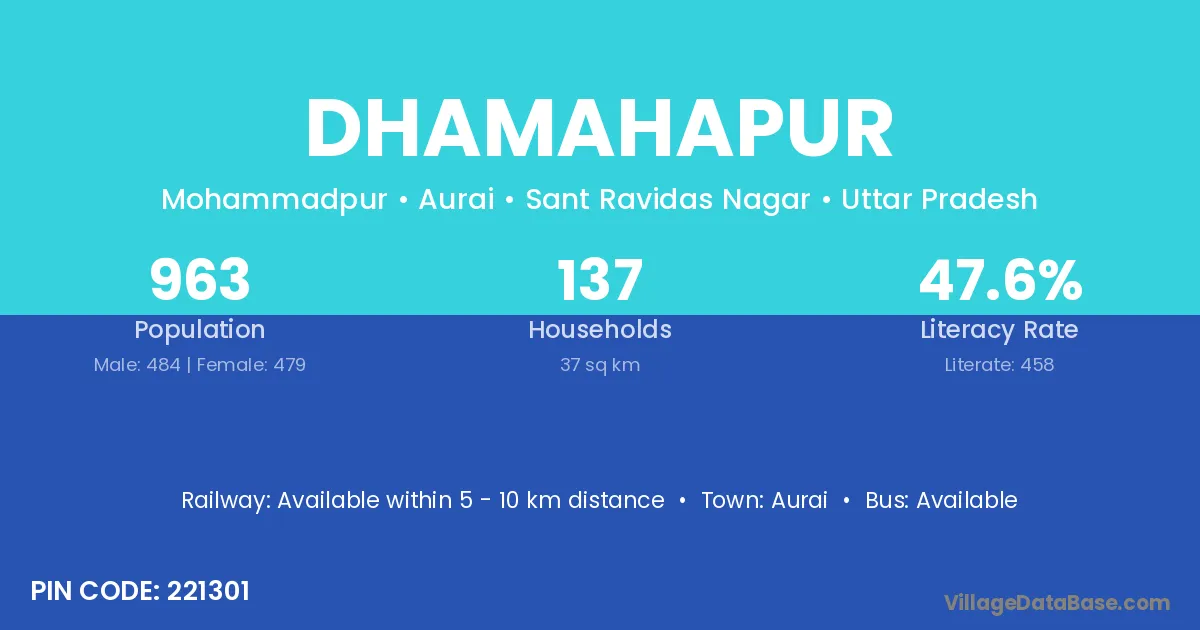 Dhamahapur village has a total population of 963 people, of which 484 are males and 479 are females.