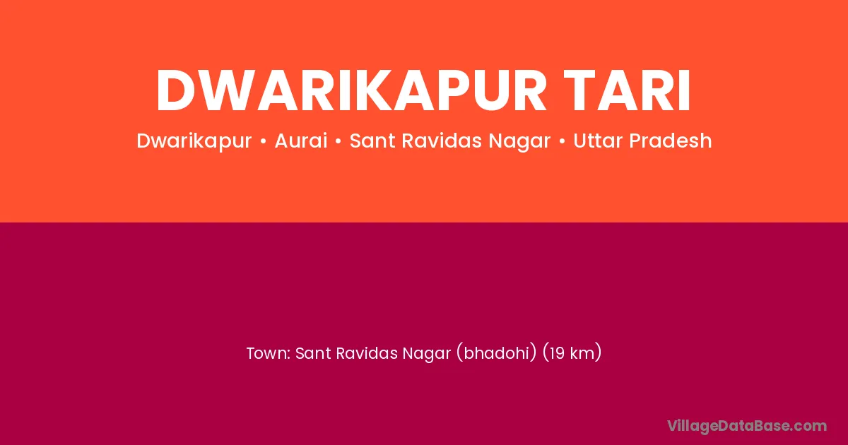 Sant Ravidas Nagar (bhadohi) (19 km) is the nearest town to Dwarikapur Tari village for major economic activities and is located approximately 19 km away.