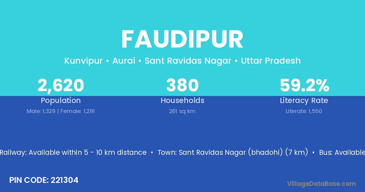 Sant Ravidas Nagar (bhadohi) (7 km) is the nearest town to Faudipur village for major economic activities and is located approximately 7 km away.