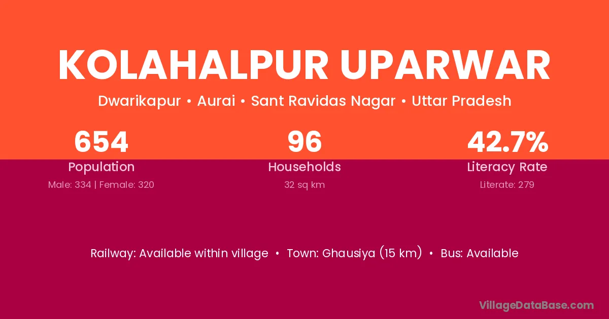 The literacy rate of Kolahalpur Uparwar village is 42.66%. Male literacy stands at 54.19% and female literacy at 30.63%.