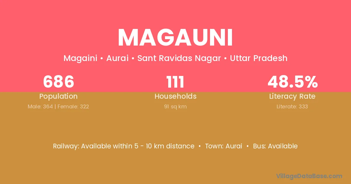 Magauni village has a total population of 686 people, of which 364 are males and 322 are females.