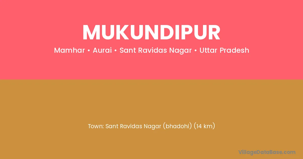 Sant Ravidas Nagar (bhadohi) (14 km) is the nearest town to Mukundipur village for major economic activities and is located approximately 14 km away.