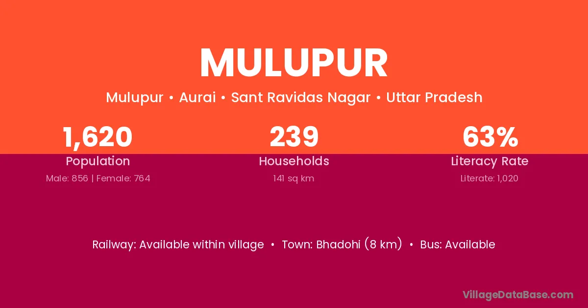 Bhadohi (8 km) is the nearest town to Mulupur village for major economic activities and is located approximately 8 km away.