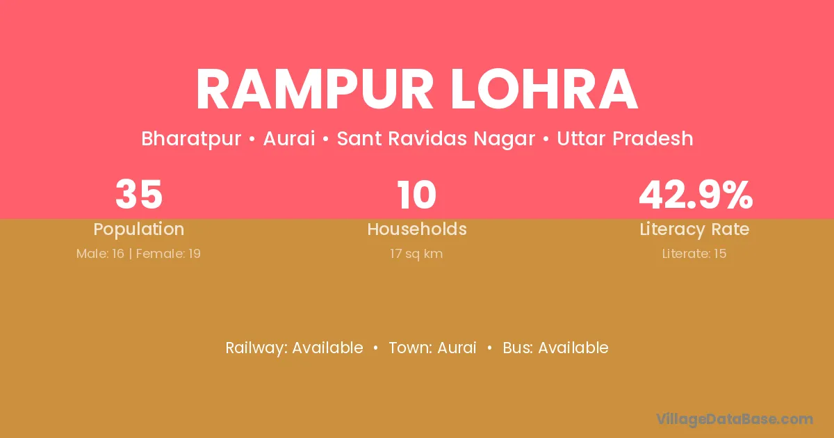 Rampur Lohra village has a total population of 35 people, of which 16 are males and 19 are females.