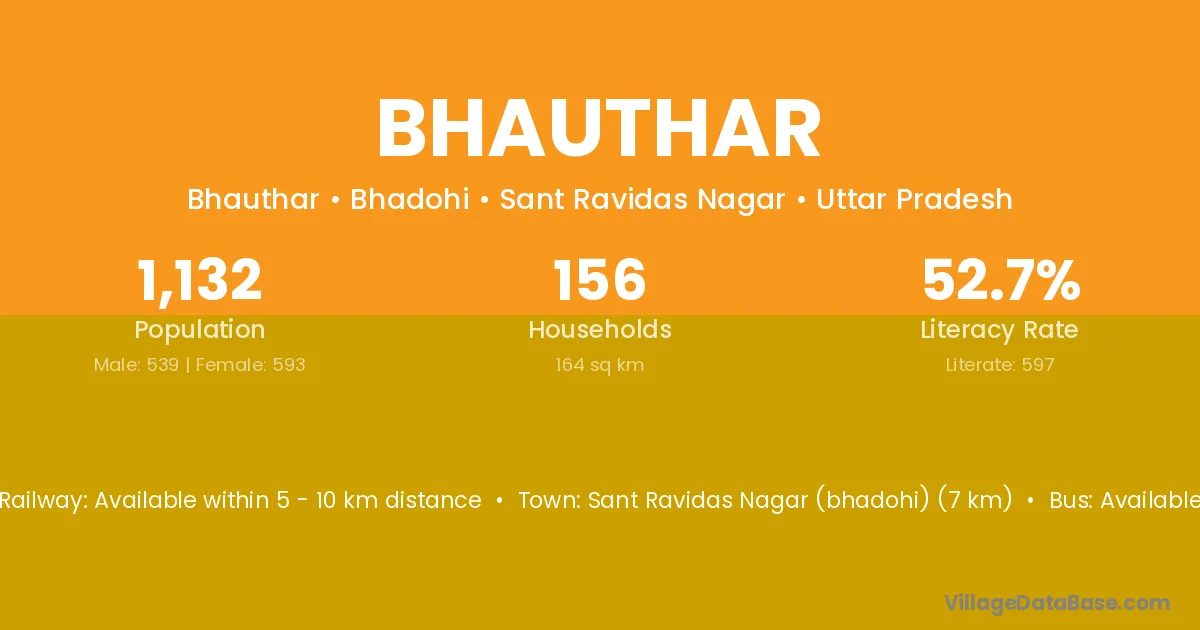 Sant Ravidas Nagar (bhadohi) (7 km) is the nearest town to Bhauthar village for major economic activities and is located approximately 7 km away.