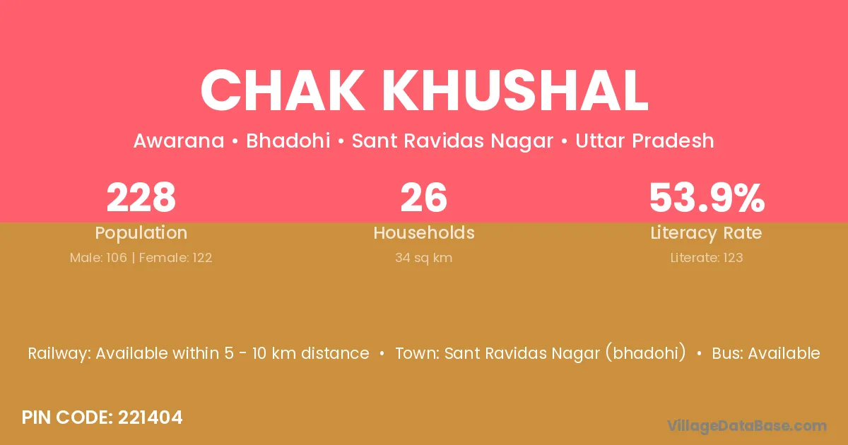 Sant Ravidas Nagar (bhadohi) is the nearest town to Chak Khushal village for major economic activities