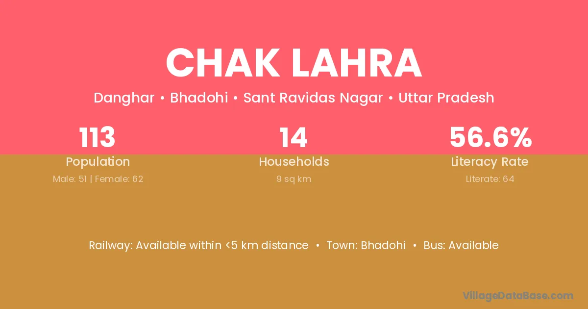 Bhadohi is the nearest town to Chak Lahra village for major economic activities