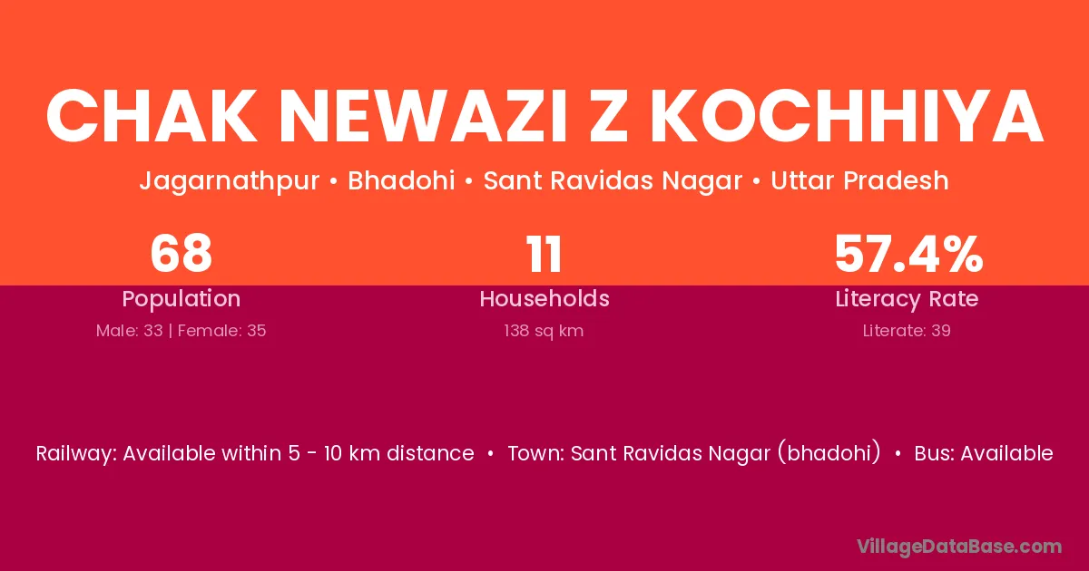 Sant Ravidas Nagar (bhadohi) is the nearest town to Chak Newazi Z Kochhiya village for major economic activities