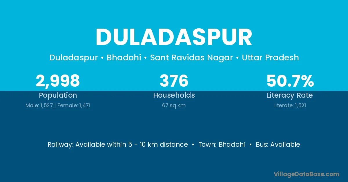 Bhadohi is the nearest town to Duladaspur village for major economic activities