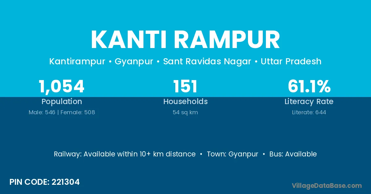 Sant Ravidas Nagar (bhadohi) (35 km) is the nearest town to Kanti Rampur village for major economic activities and is located approximately 35 km away.