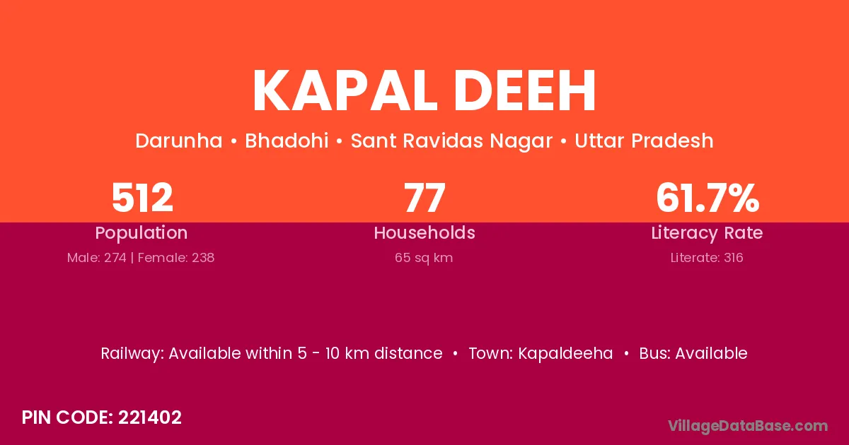 According to Census 2011 information, the village code of Kapal Deeh village is 221402.