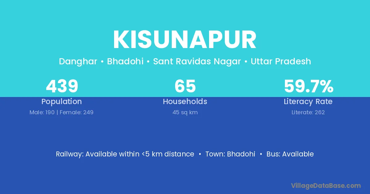 Bhadohi is the nearest town to Kisunapur village for major economic activities