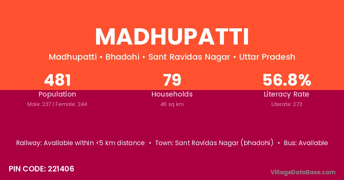 Sant Ravidas Nagar (bhadohi) is the nearest town to Madhupatti village for major economic activities