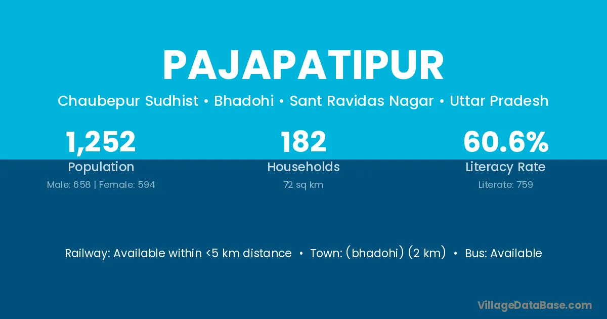 (bhadohi) (2 km) is the nearest town to Pajapatipur village for major economic activities and is located approximately 2 km away.