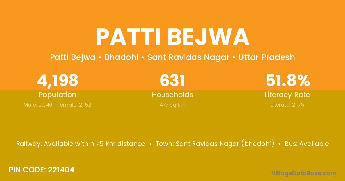 Sant Ravidas Nagar (bhadohi) is the nearest town to Patti Bejwa village for major economic activities