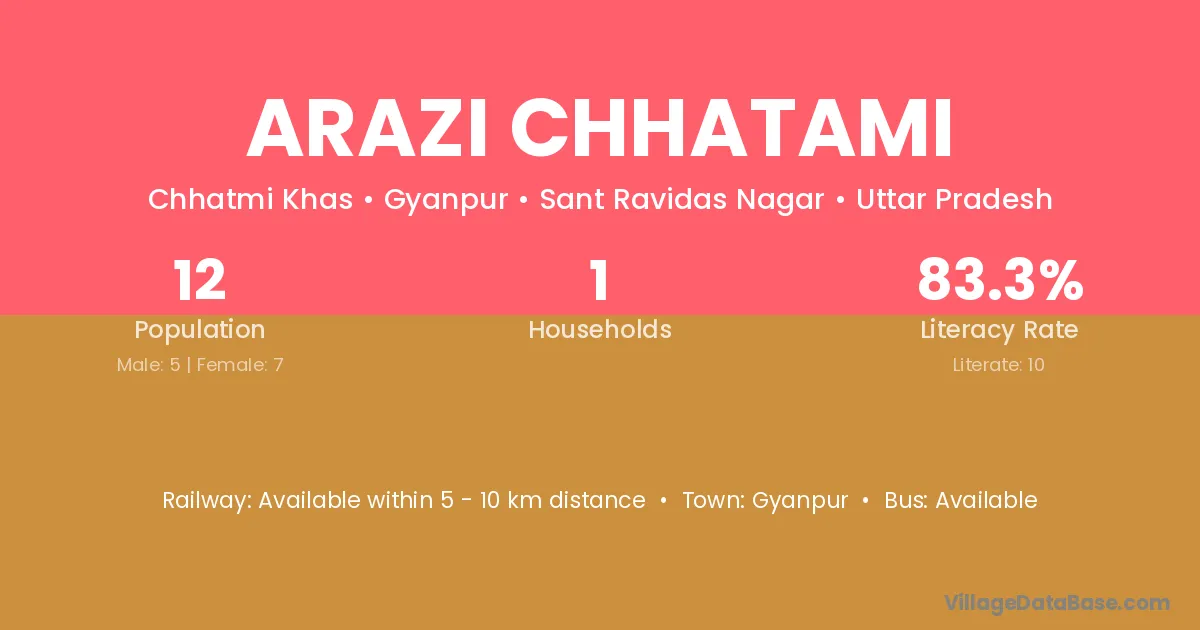 Arazi Chhatami village has a total population of 12 people, of which 5 are males and 7 are females.