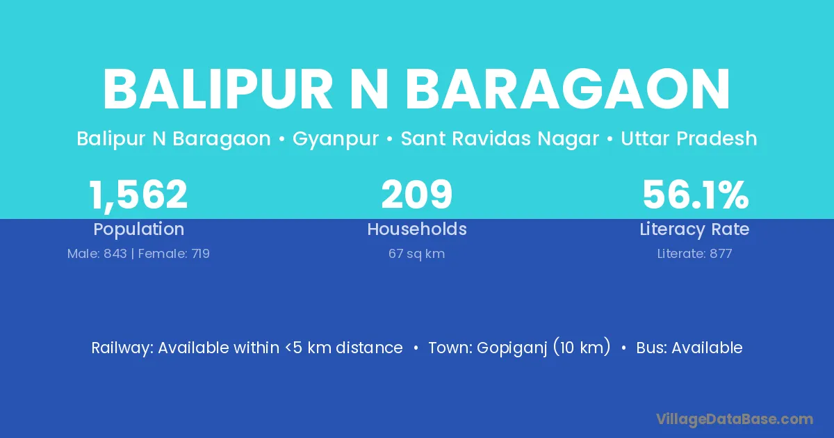 Gopiganj (10 km) is the nearest town to Balipur N Baragaon village for major economic activities and is located approximately 10 km away.