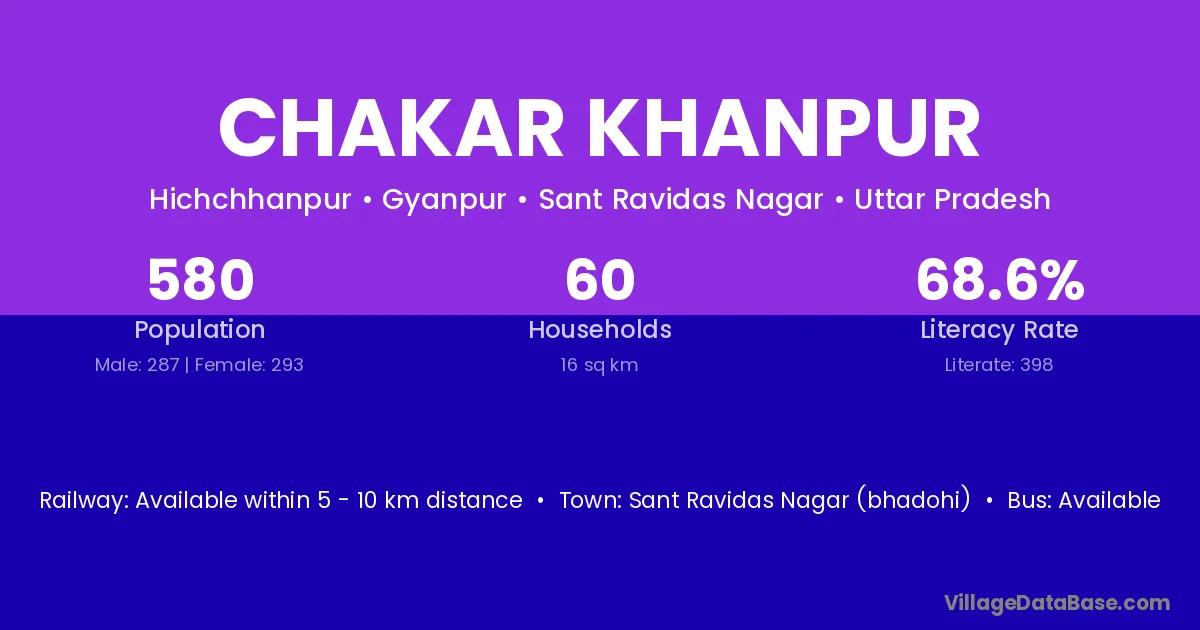 Sant Ravidas Nagar (bhadohi) is the nearest town to Chakar Khanpur village for major economic activities
