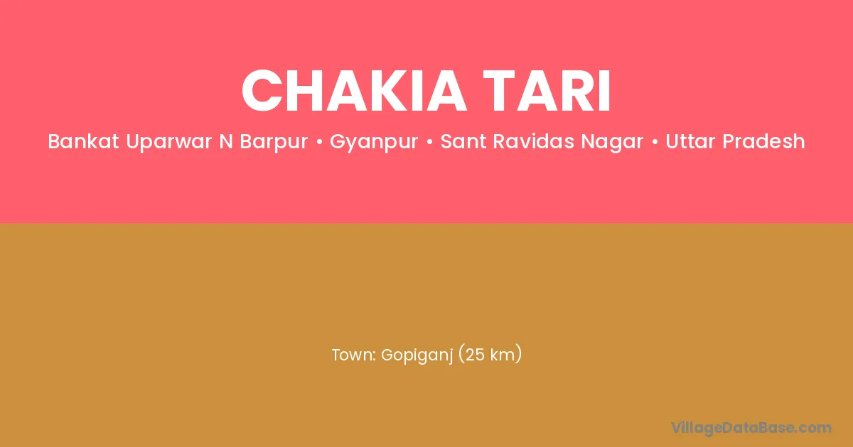 Gopiganj (25 km) is the nearest town to Chakia Tari village for major economic activities and is located approximately 25 km away.