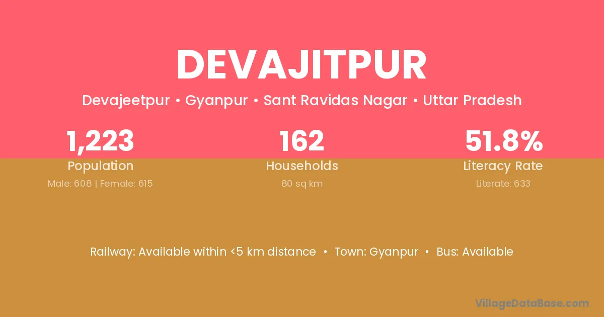 Devajitpur village has a total population of 1,223 people, of which 608 are males and 615 are females.