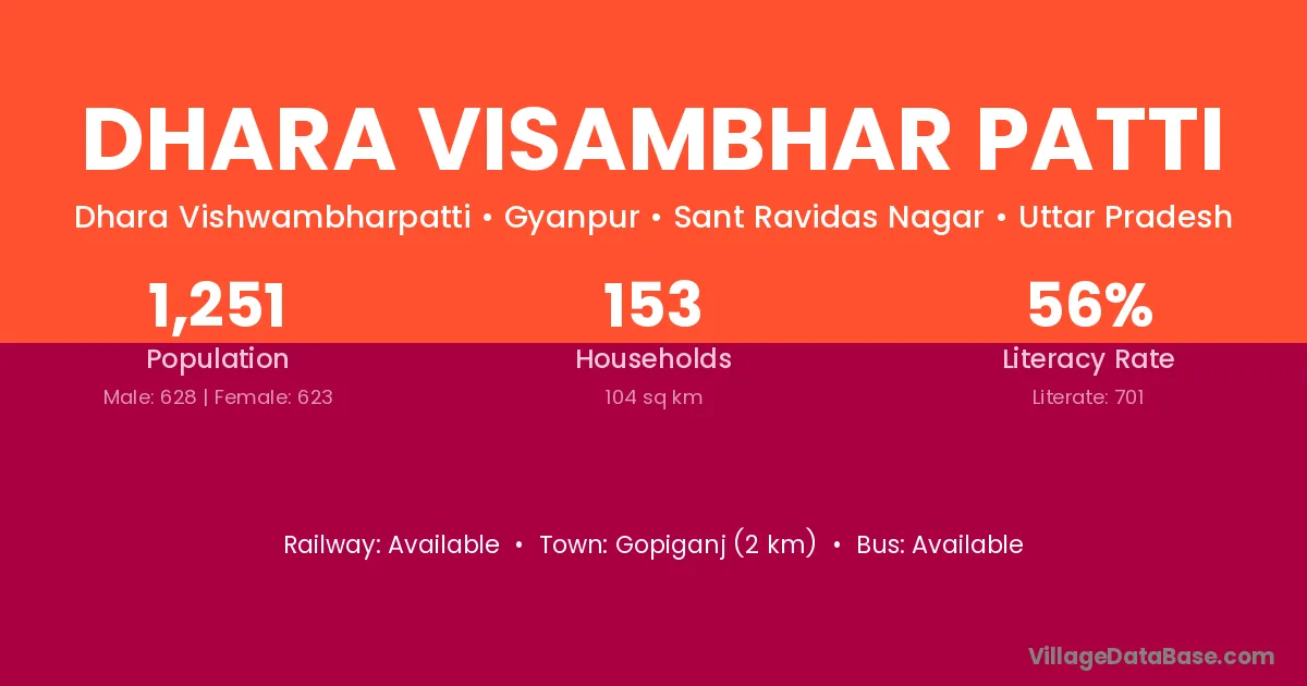 Gopiganj (2 km) is the nearest town to Dhara Visambhar Patti village for major economic activities and is located approximately 2 km away.