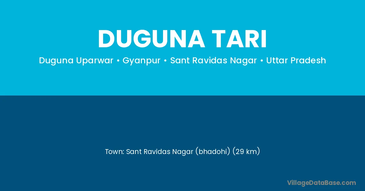 Sant Ravidas Nagar (bhadohi) (29 km) is the nearest town to Duguna Tari village for major economic activities and is located approximately 29 km away.