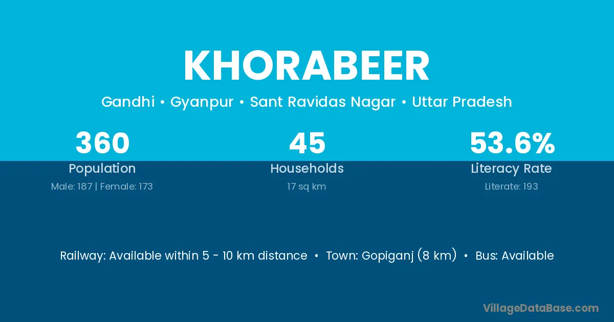 Gopiganj (8 km) is the nearest town to Khorabeer village for major economic activities and is located approximately 8 km away.