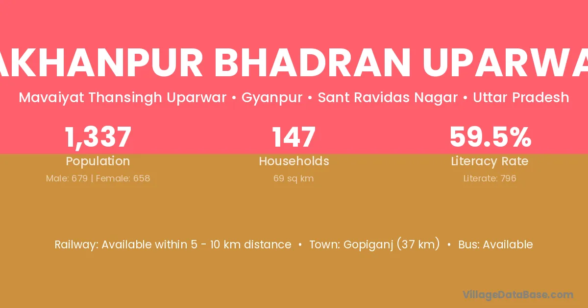 Gopiganj (37 km) is the nearest town to Lakhanpur Bhadran Uparwar village for major economic activities and is located approximately 37 km away.