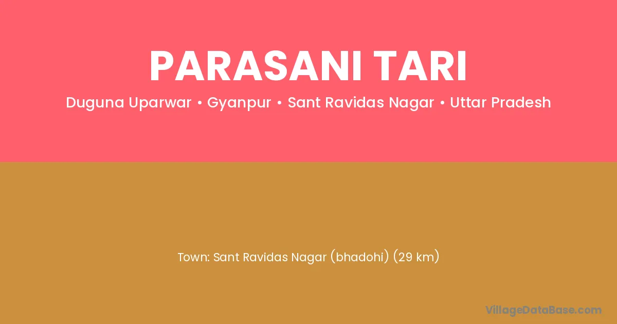 Sant Ravidas Nagar (bhadohi) (29 km) is the nearest town to Parasani Tari village for major economic activities and is located approximately 29 km away.