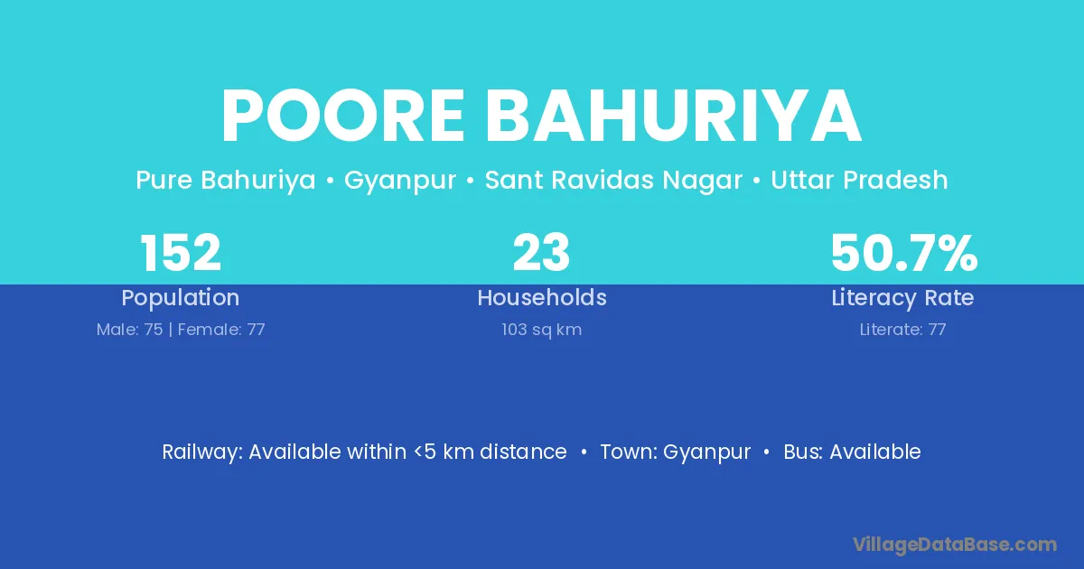 Gyanpur is the nearest town to Poore Bahuriya village for major economic activities