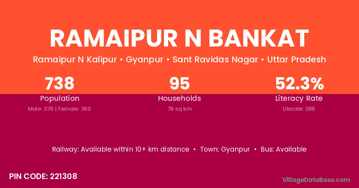 Ramaipur N Bankat village has a total population of 738 people, of which 378 are males and 360 are females.