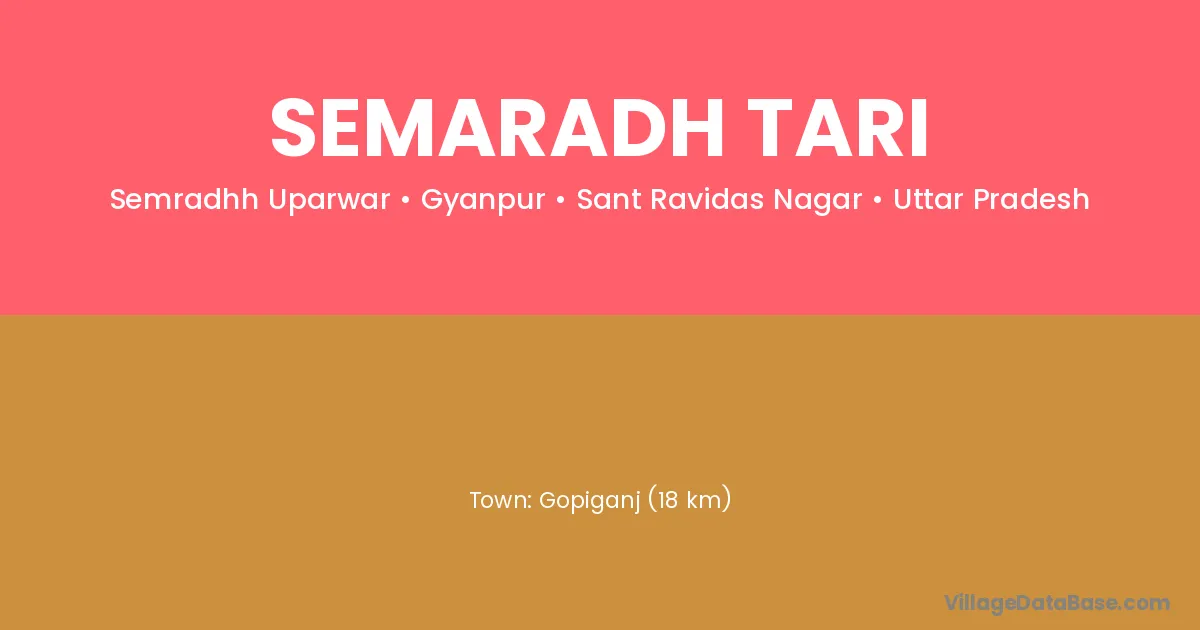 Gopiganj (18 km) is the nearest town to Semaradh Tari village for major economic activities and is located approximately 18 km away.