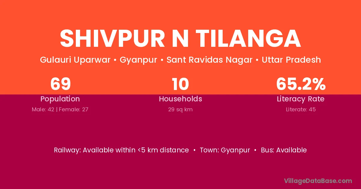 Shivpur N Tilanga village has a total population of 69 people, of which 42 are males and 27 are females.