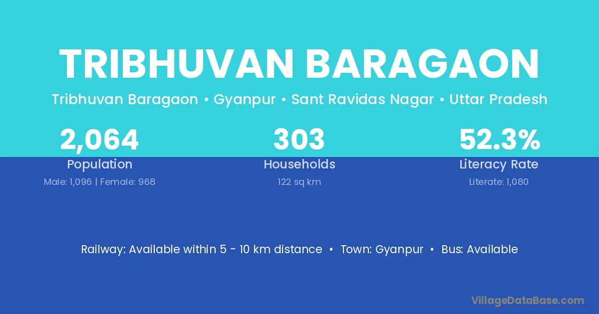 Tribhuvan Baragaon village has a total population of 2,064 people, of which 1,096 are males and 968 are females.