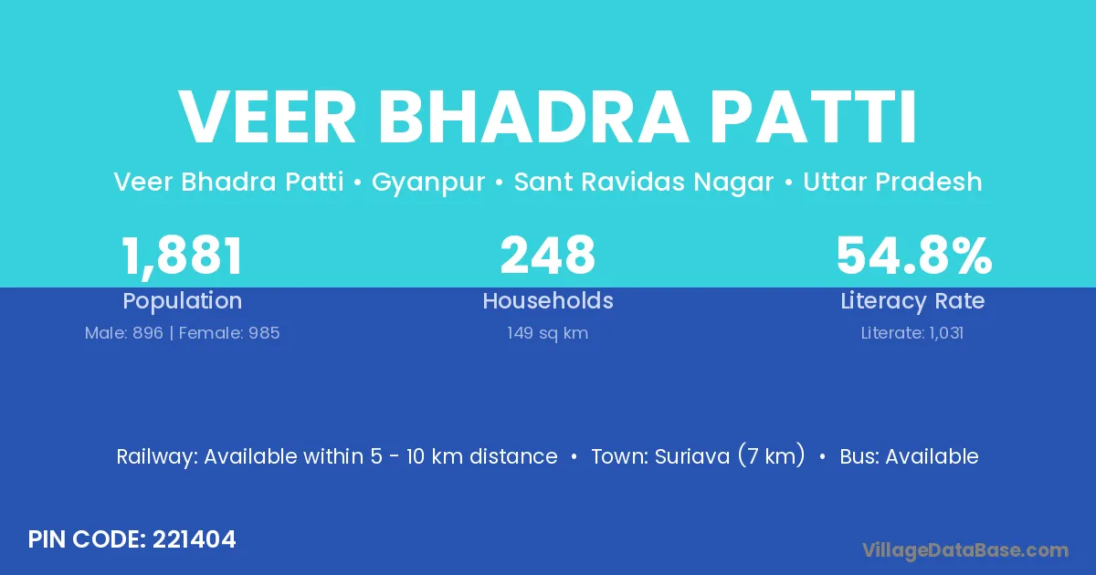 According to Census 2011 information, the village code of Veer Bhadra Patti village is 221404.