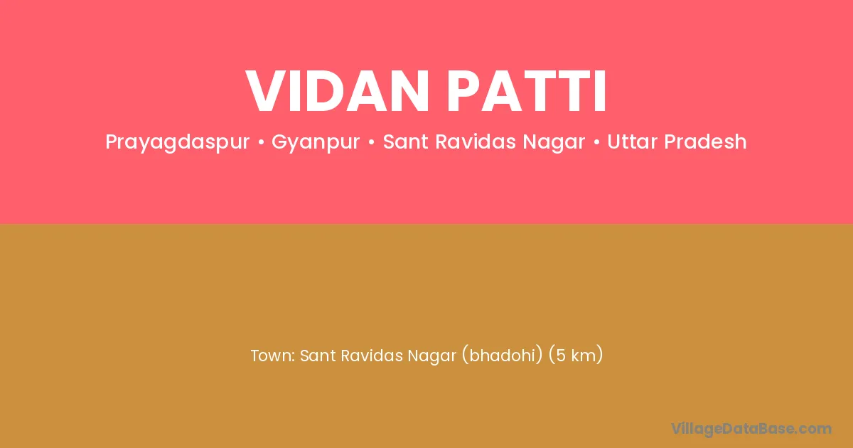 Sant Ravidas Nagar (bhadohi) (5 km) is the nearest town to Vidan Patti village for major economic activities and is located approximately 5 km away.