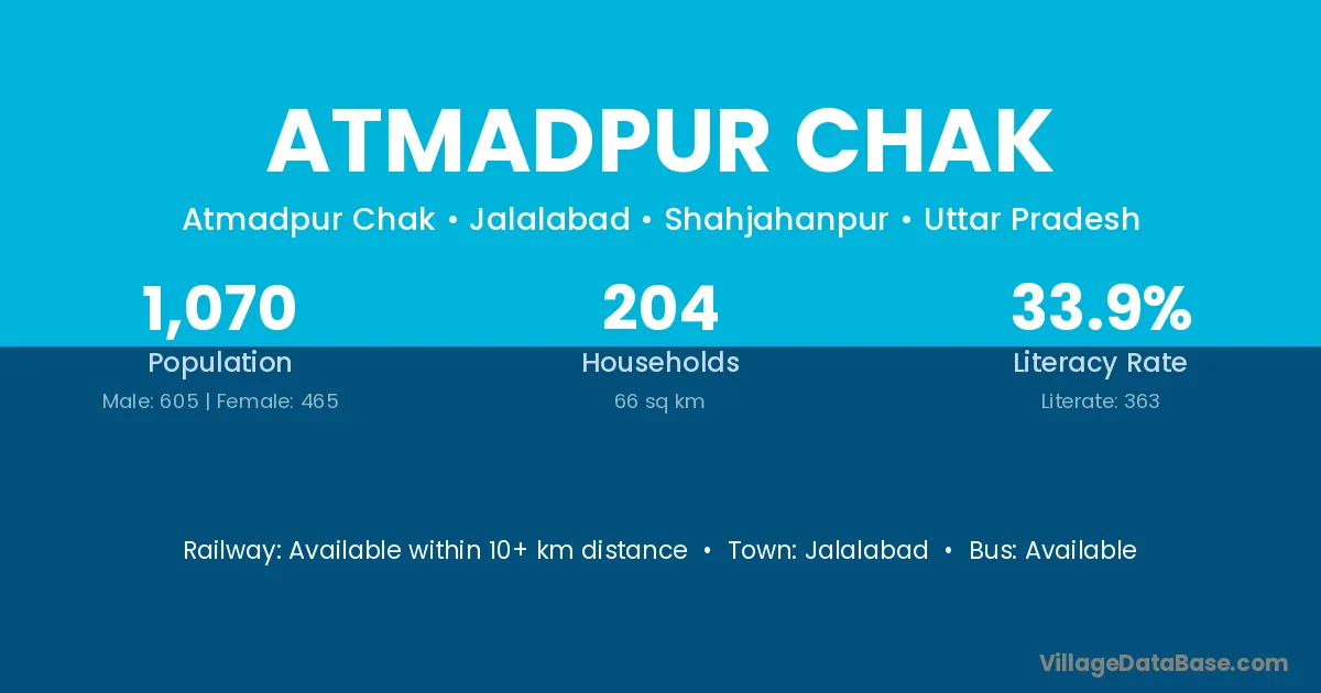 Jalalabad is the nearest town to Atmadpur Chak village for major economic activities